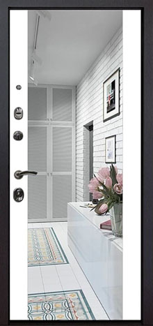 Металлические двери с зеркалом внутри – многофункциональные изделия. Помимо основных назначений: защита помещения от вандализма, обеспечение достойной теплоизоляции, они выполняют другие функции – украшают дизайн интерьера и отражают хозяев квартиры, когда нужно поправить причёску или одежду, сделать макияж и т. д. Это очень удобно, ведь в коридорах зеркальный элемент является необходимым. Это также очень выгодно: недорогие конструкции оснащены всем необходимым.