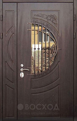 Натуральное дерево в отделке придаёт входу особую солидность, а прочная стальная основа гарантирует долговечность и защиту. Каркас из профильной трубы и металл толщиной 2 мм образуют надёжный каркас, усиленный рёбрами жёсткости и блокираторами, которые повышают устойчивость к взлому. Входная дверь с остеклением в дом №108 выгодно отличается декоративным стеклом: оно визуально облегчает массивную конструкцию, пропускает дневной свет и делает фасад более изящным. Две линии уплотнителей препятствуют сквознякам, а при желании конструкцию можно утеплить минватой или пенопластом. Массив дерева как отделочный материал устойчив к механическим повреждениям, не теряет привлекательности с годами и органично смотрится как снаружи, так и внутри. Такая дверь станет акцентом входной группы, совмещая в себе функциональность и элегантный облик.